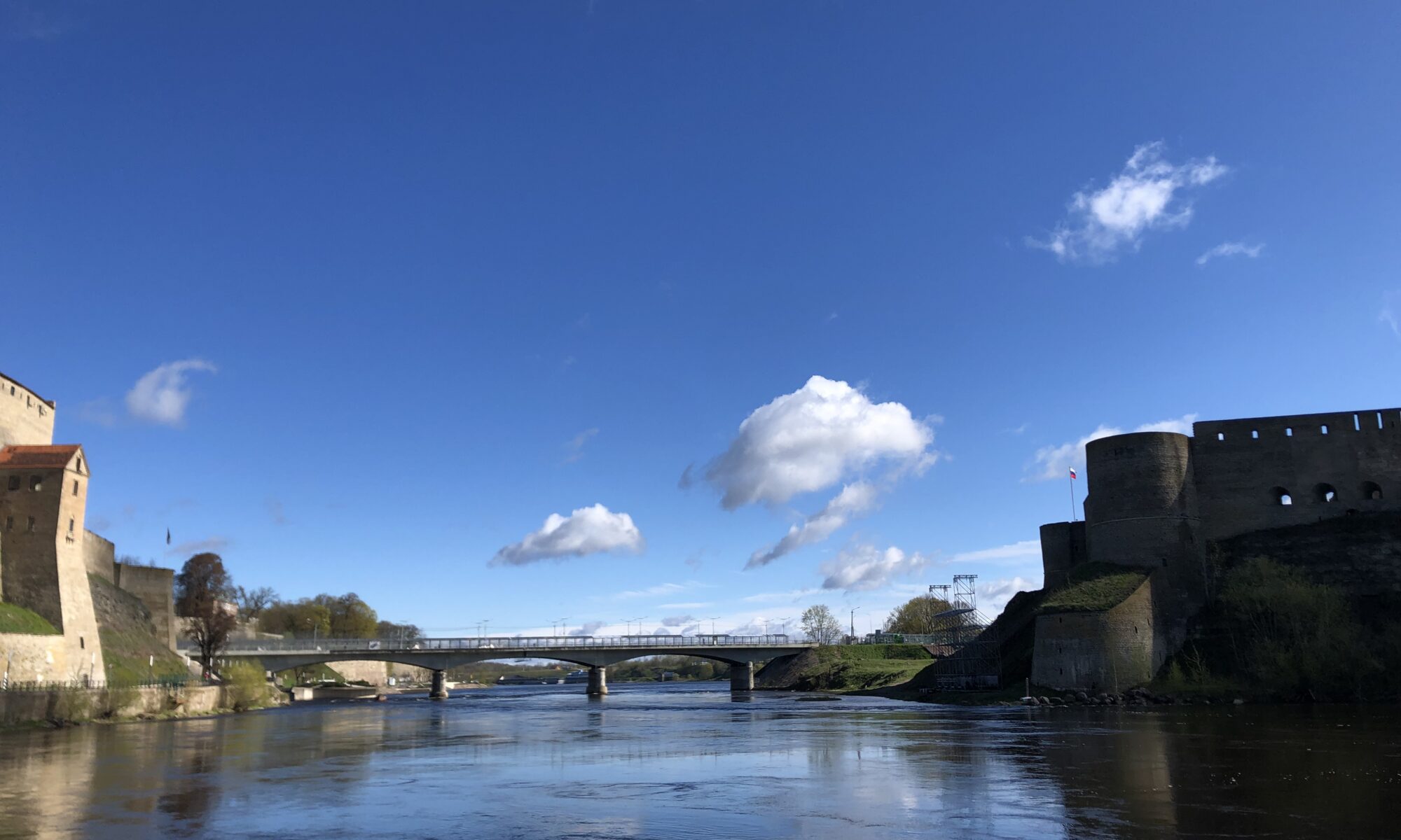 Foto bovenaan de pagina: De Narva, grensrivier tussen Estland en Rusland, gemaakt op 3 mei 2025